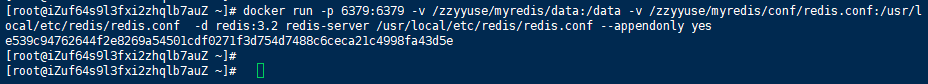 docker run -p 6379:6379 -v /zzyyuse/myredis/data:/data -v /zzyyuse/myredis/conf/redis.conf:/usr/local/etc/redis/redis.conf -d redis:3.2 redis-server /usr/local/etc/redis/redis.conf --appendonly yes
